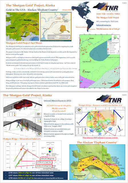 "My belief is TNR's Shotgun Gold Project can potentially grow and become a foremost, immediate satellite site Gold deposit to Donlin Gold's Mining Camp infrastructure. This vision is based on our exploration work and academic studies like the ones from Dr Tim Baker in which Shotgun Gold Project is not only listed alongside Donlin Creek as one of the "Major Porphyry Gold Deposits" but is also projected to contain the similar porphyry intrusion-related type system as Donlin."